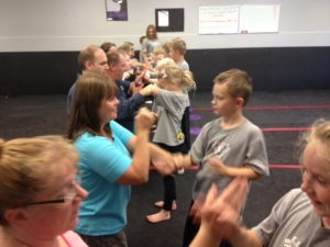 - During a class where parents participate, everyone poses for a quick “funny” pic!