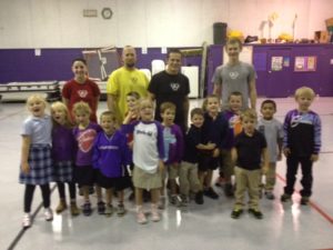 - A young kindergarden class poses for a picture at a school anti bullying talk during their PE class. (For more info on school visits, contact me via email.)