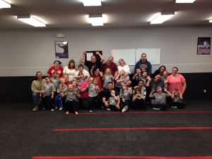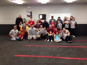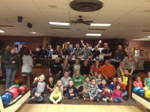 - At a martial arts school bowling party parents, youth students and siblings take a break for a group picture… Everyone had a blast!